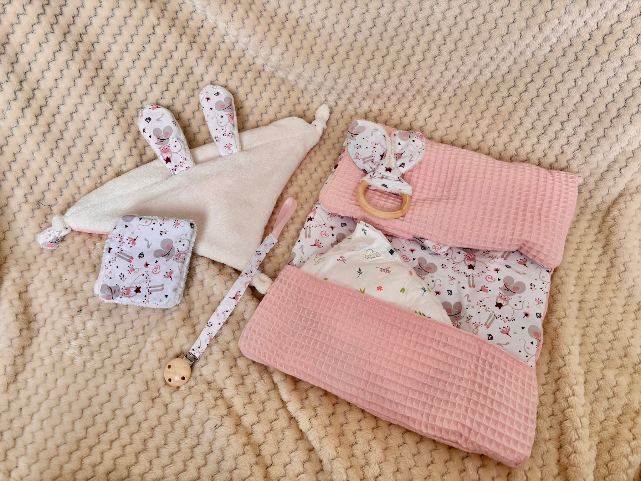 Parfaite pour un cadeau de naissance, cette collection apporte une touche tendre et raffinée à l’univers de bébé ✨